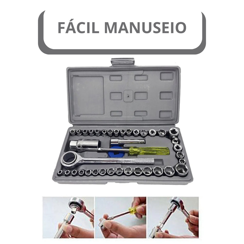 Este conjunto essencial de 39 peças + 1 Maleta dobrável e super fácil de carregar, garantindo praticidade e organização onde quer que você esteja. Tenha suas ferramentas sempre à mão e aumente sua produtividade com essa solução completa e portátil!