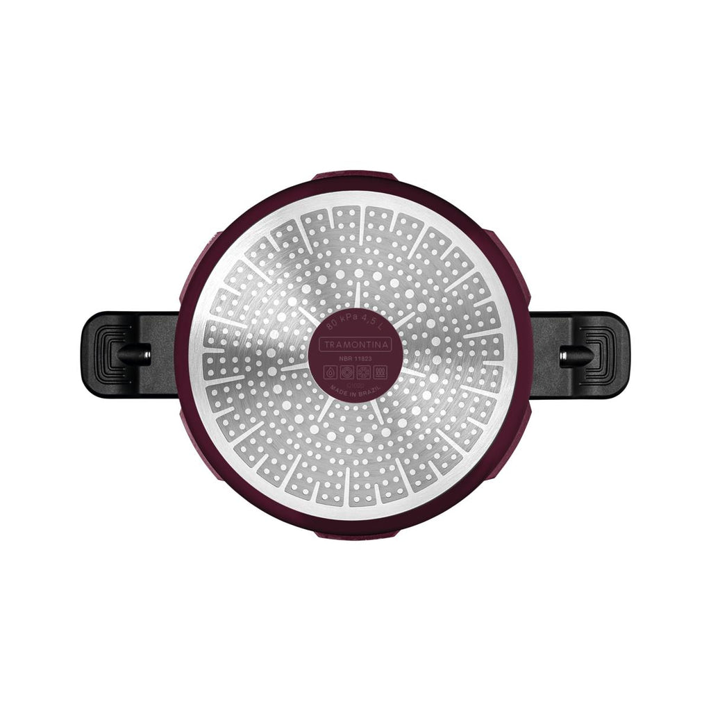 Com a panela de pressão Tramontina Torino em alumínio com revestimento interno e externo cerâmico vermelho framboesa 20 centímetros 4,5 litros você irá preparar suas refeições com muito mais rapidez e vai garantir o cozimento dos alimentos de maneira uniforme. Produzida em alumínio com espessura de 4 milímetros e revestimento interno e externo cerâmico ela vai lhe proporcionar praticidade e eficiência nas tarefas na cozinha. Para sua segurança as alças são em baquelite antitérmico, reduzem a propagação de calor e proporcionam ainda, maior conforto durante o manuseio. Ela vem com tampa de alumínio com acabamento externo polido e interno satinado e ainda pode ser utilizada em fogões a gás, elétricos, vitrocerâmicos e indução, o que garante maior versatilidade. Equipe sua cozinha com os itens Tramontina e tenha momentos incríveis ao redor do fogão!